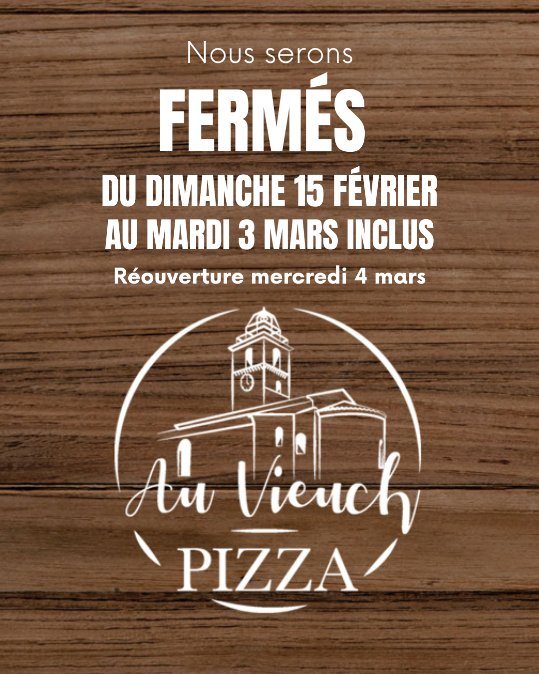 Fermé le dimanche et le lundi